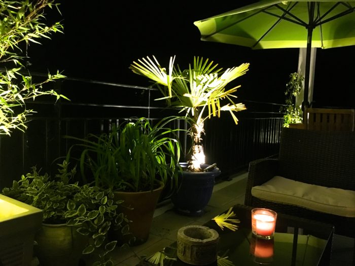 En vrac, quelques photos de balcons ou terrasses éclairés…